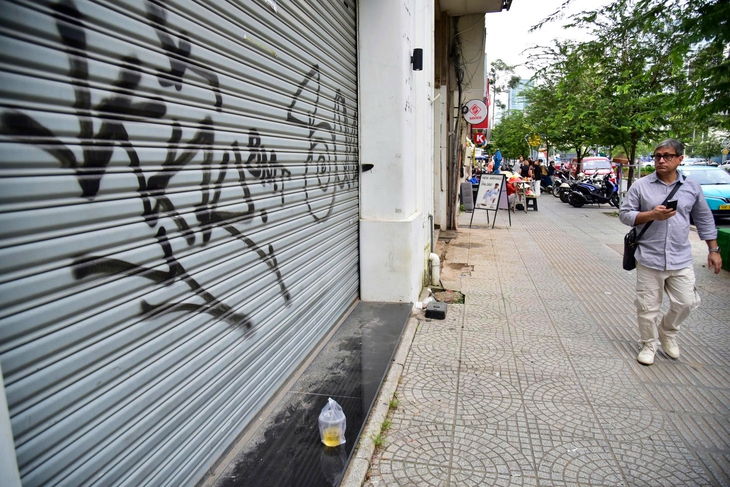 Những hình vẽ xấu xí trên cánh cửa của các ngôi nhà dọc trục Lê Lợi đã phải nhường chỗ cho lớp sơn mới đẹp mắt - Ảnh: TRÍ ĐỨC