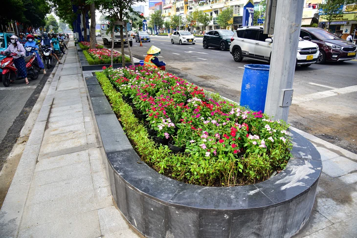 Những bồn hoa xuống cấp trầm trọng nay đã được sửa chữa, ốp đá granite - Ảnh: TRÍ ĐỨC